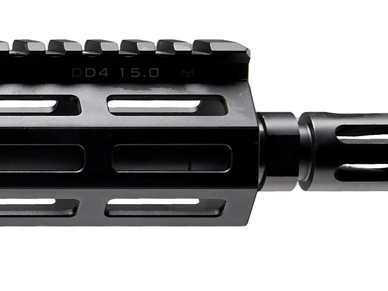 - NEW 15" DD4 flat-front rail for maximum suppressor compatibility
